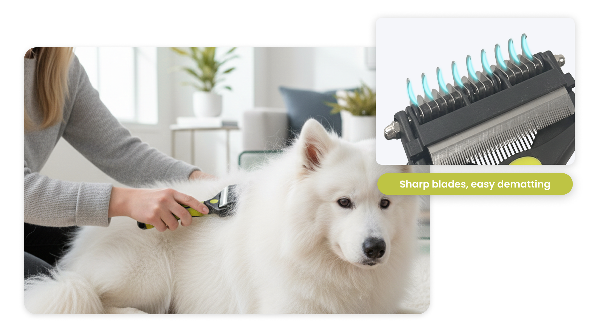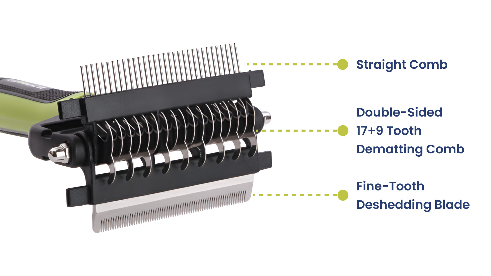 Yes. The double-sided 17+9 tooth dematting comb includes sharp inner blades that help cut through stubborn mats and tangles efficiently, reducing pulling and discomfort during grooming.