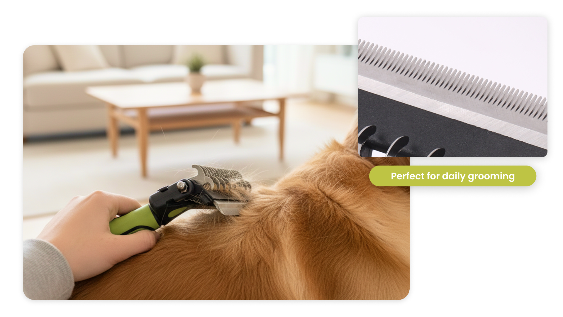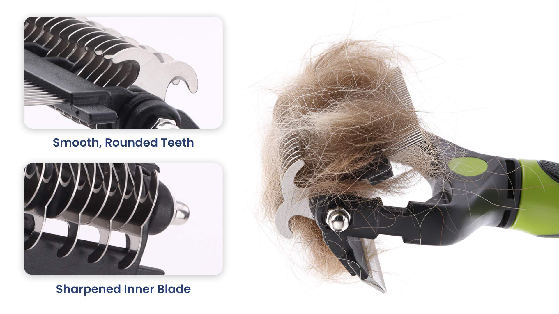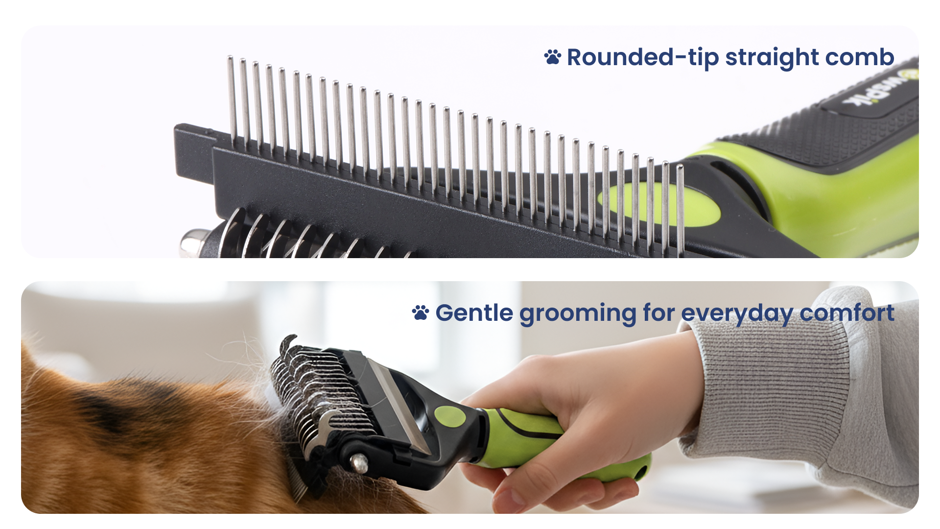 Rounded teeth for gentle grooming.