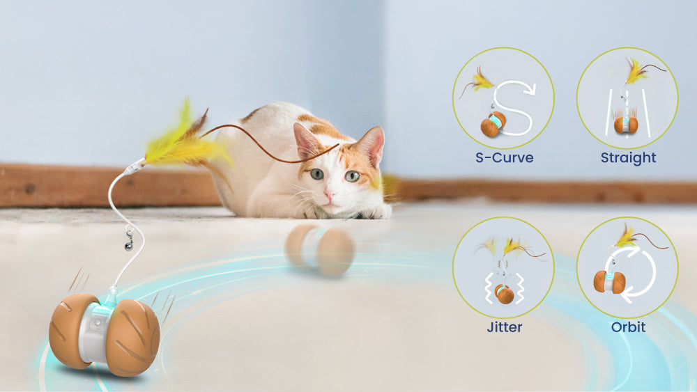 The toy features multiple dynamic motion patterns including S curve, jitter, orbit, and straight movement. These varied motions help prevent boredom and stimulate your cat’s natural hunting instincts.
