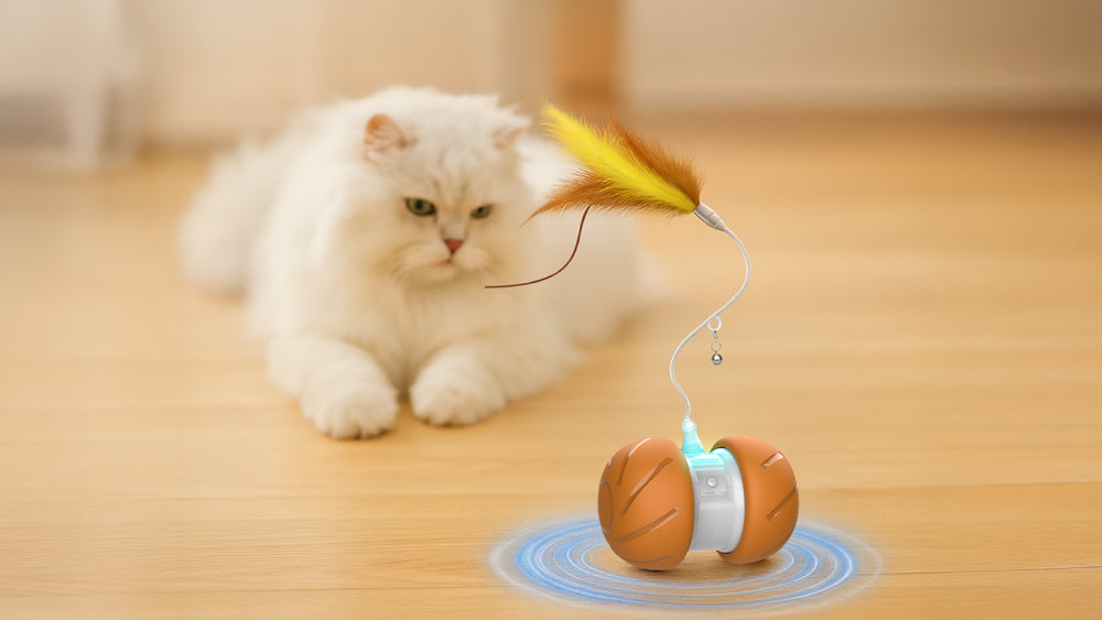An interactive, rechargeable spinner toy designed to keep cats active, curious,