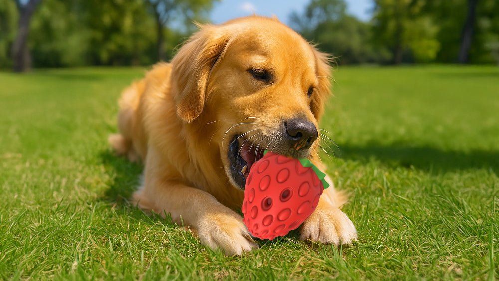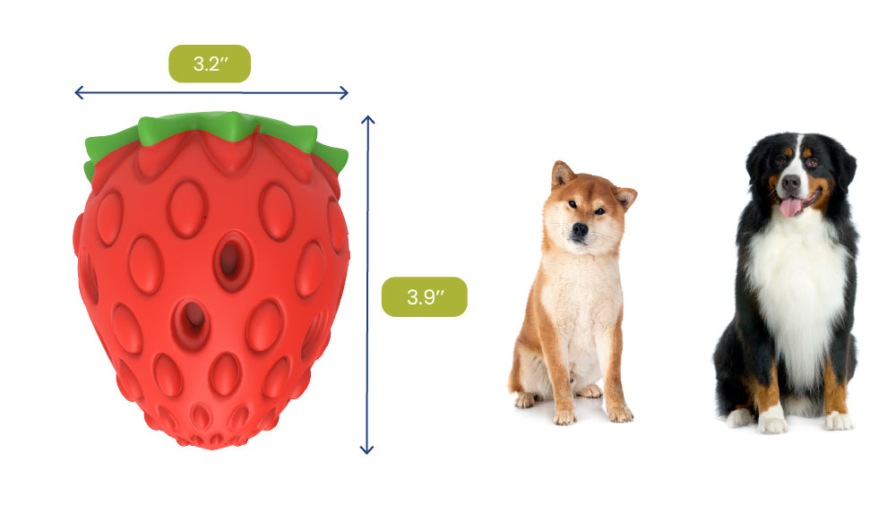 Treat your furry friend to a fun and interactive playtime with the PawsPik Strawberry Treat Dispensing Enrichment Dog Chew Toy. This adorable fruit-shaped toy is made from 100% natural rubber, ensuring it is safe and durable for your pet to chew on every day. Perfect for medium to large dogs, this toy features a special cavity for dispensing treats, encouraging active foraging and promoting healthy digestion. With strategically placed openings, your pup can use their natural instincts to sniff and work for their treats, providing mental stimulation and preventing boredom. The textured surface also helps clean teeth and massage gums while your dog chews, supporting better oral hygiene. Whether used for games like fetch and tug or as a solo activity, this lightweight and sturdy toy will keep your pet engaged, active, and mentally sharp.