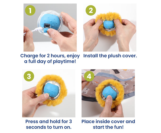 Simple and easy to use, just charge, install the plush cover, power on, and place inside the cover and it's ready to use!