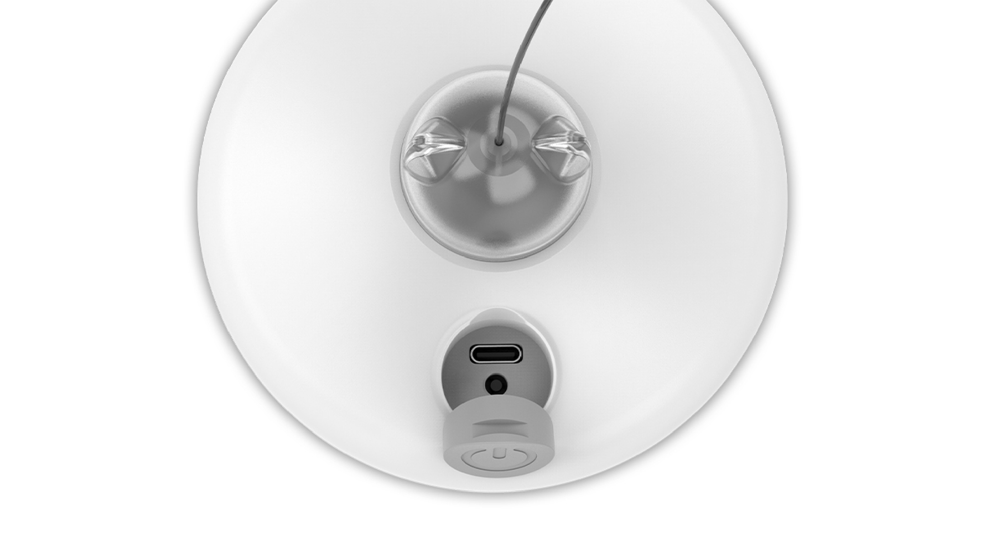 Rechargeable battery powers up in 2 hours using the included Type-C cable.