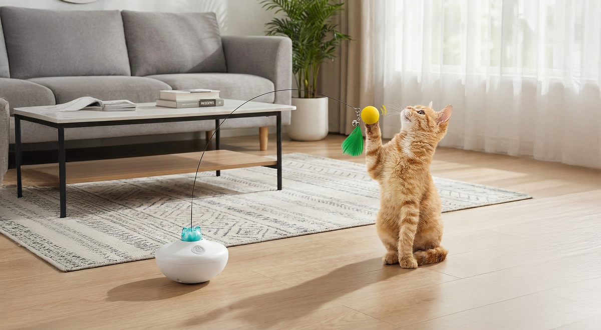 Automatically moves the feather pom to inspire natural hunting instincts and keep energetic cats entertained.